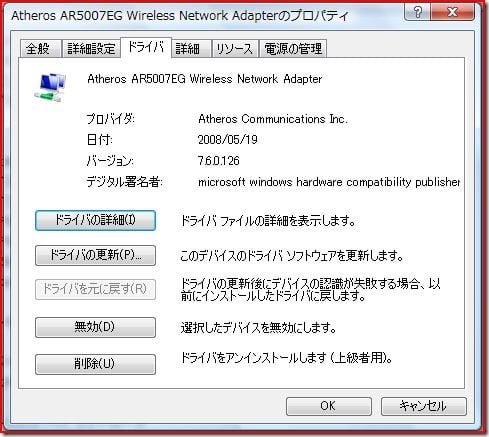 前にも記事にしましたが、現在Atheros社は買収されて Qualcomm AtherosとなっておりVista時代のドライバーは公式サイトからは探せません。今回は富士通のドライバーが提供されていて良かったです。