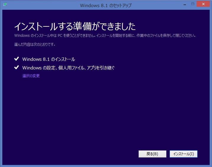 カムさん、何の更新ファイルも入っていないまっさらのままの8から8.1のアップデートを実行しました。