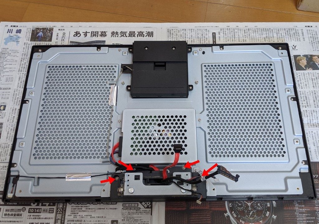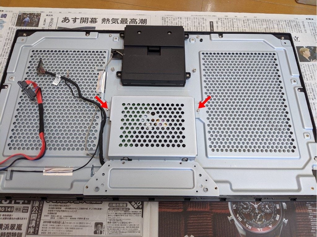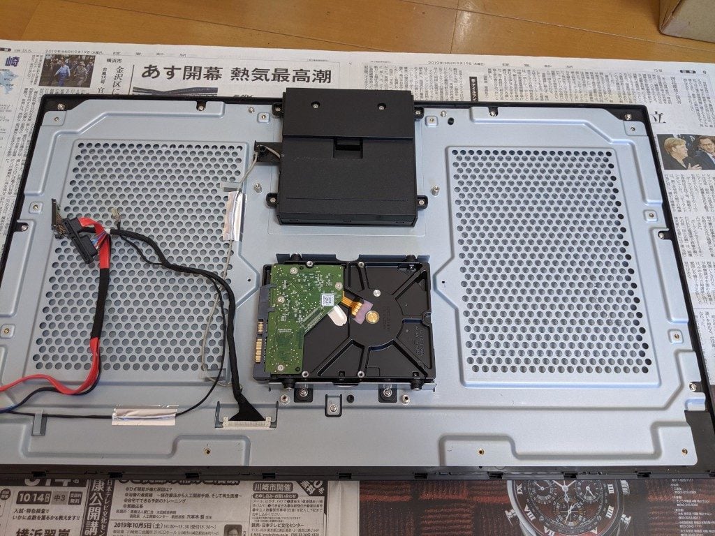 ディスプレイ裏のカバーを外したらHDDが見えますが、それを覆っているカバーを外すのにさらに分解が必要でした。