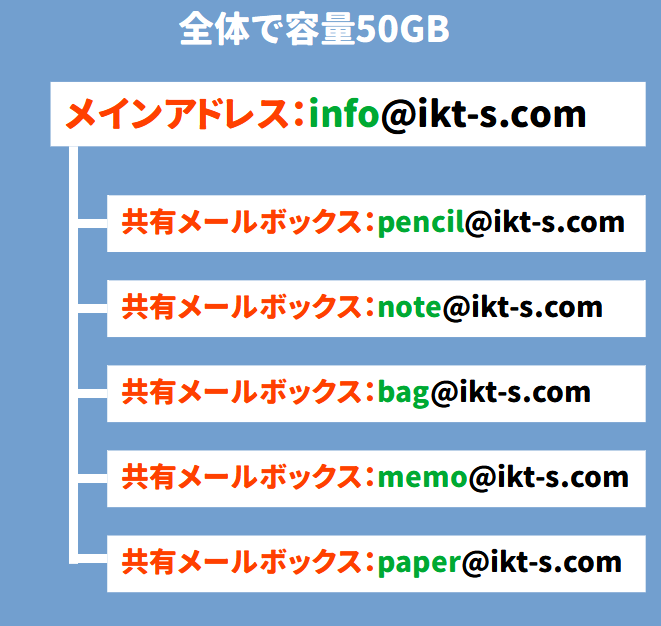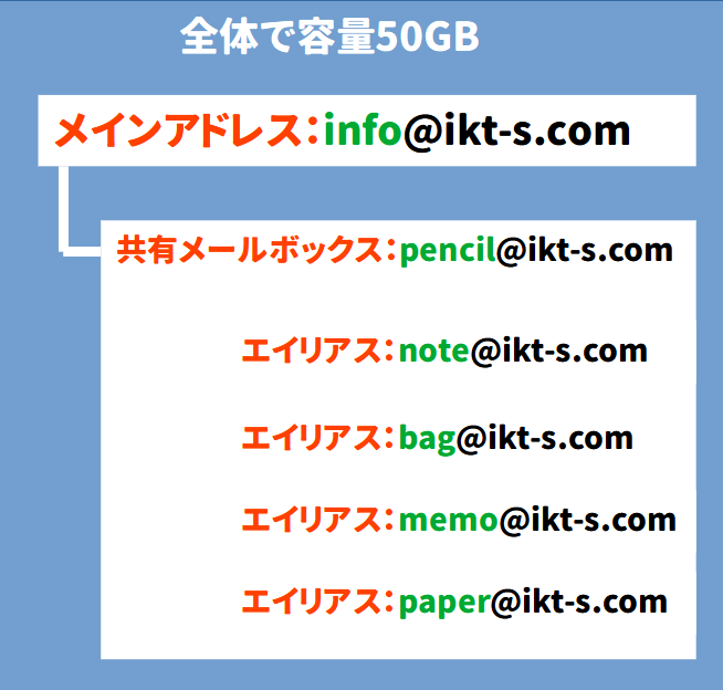 1ユーザーが複数メールアドレスを使う場合は、ライセンスは一つでも複数メールを使うことができます。このあと説明する共有メールボックス機能を使えば、ドメインが同じ複数のメールアドレスを使えます。