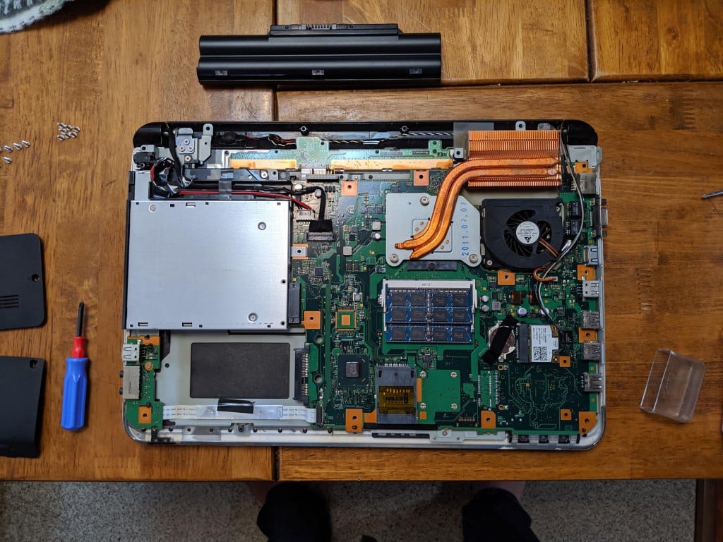 今回は、HDDをSSDに換装するところは簡単なので画像を撮っていません。