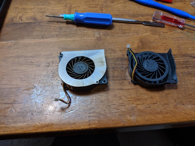 交換用のCPUファンを先に紹介しておきますが、実際には中を開けて搭載されているファンの型番(KDB05105HB)を調べて同じものをAmazonで購入しました。