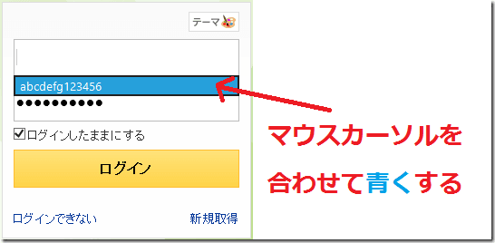 ログイン画面を出したら、間違えて保存したIDとパスワードが自動で表示されている状態から始めます。