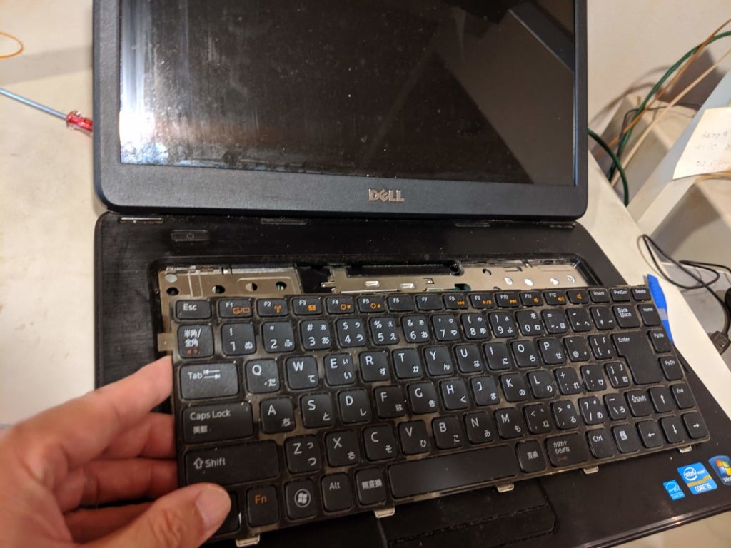 キーボードを浮かせたら、裏のコネクターを外してキーボードを完全に取り外します。