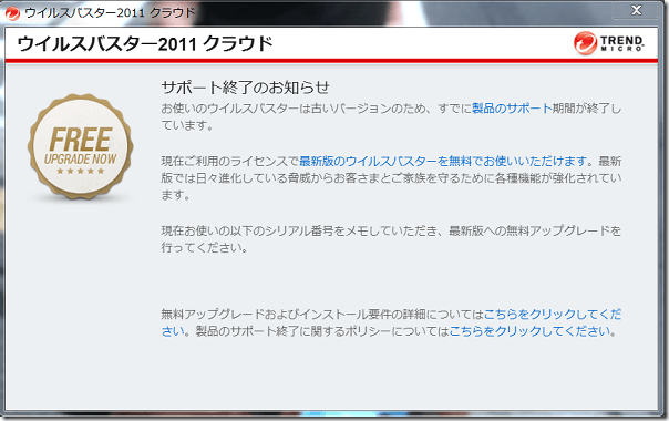 セキュリティ対策ソフトが原因というのも結構あります。今回はウイルスバスターご利用で有効期限も十分ありましたがバージョンが古いままだったのでサクッと削除してみます。