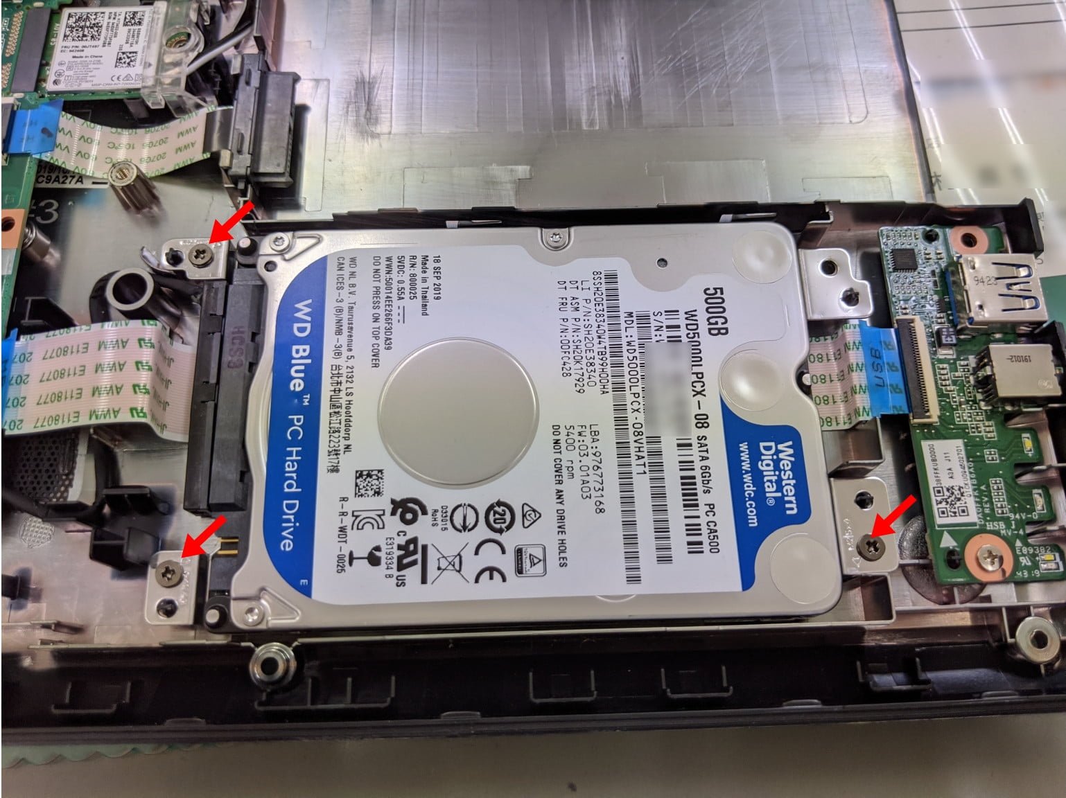 内蔵されていたHDDは500GBのWD500LPCXでした。この裏のネジ4本を外してマウンターをSSDに付け替えます。