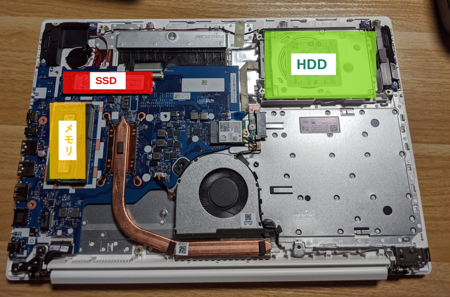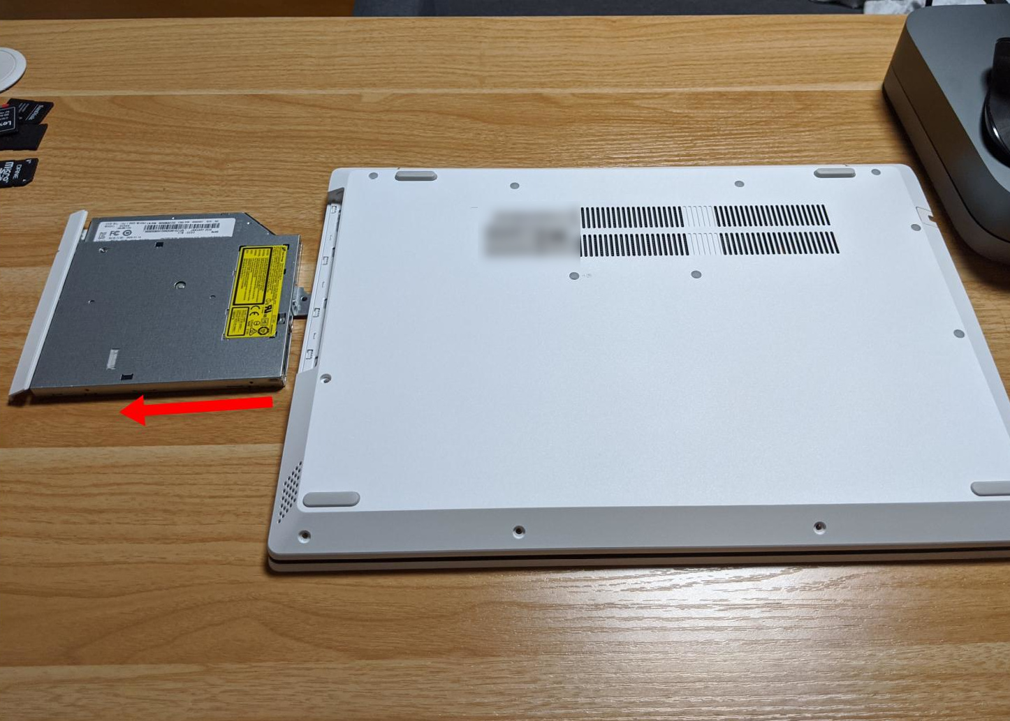 これで交換作業ができる状態になりました。NVMeのSSD、2.5インチHDD、メモリー(1スロット)のどれでもアクセス可能です。