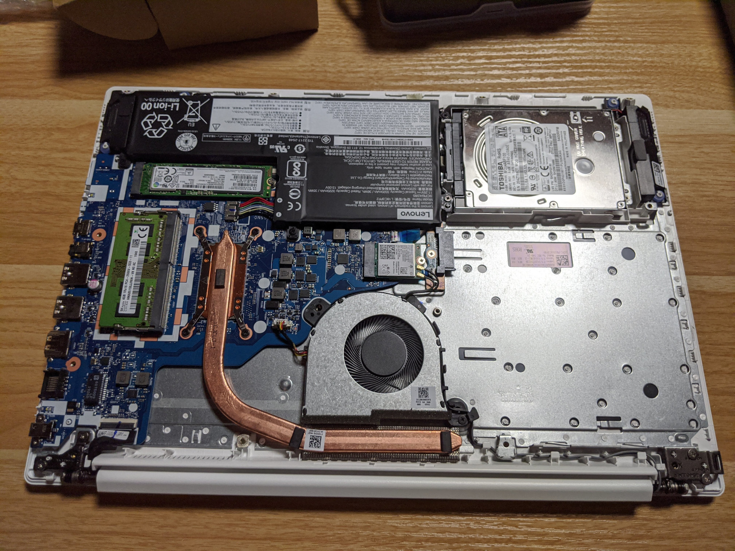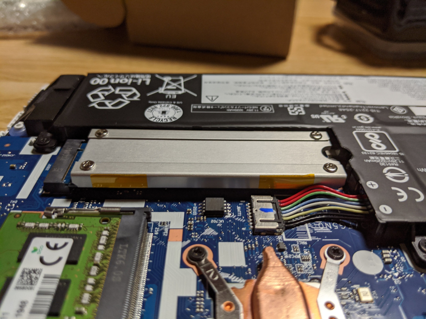 SSDを1TBのものに換装しました。ヒートシンクを取り付けてもバッテリーとほぼ同じ高さになったのでパネルと干渉せずに取り付けできました。