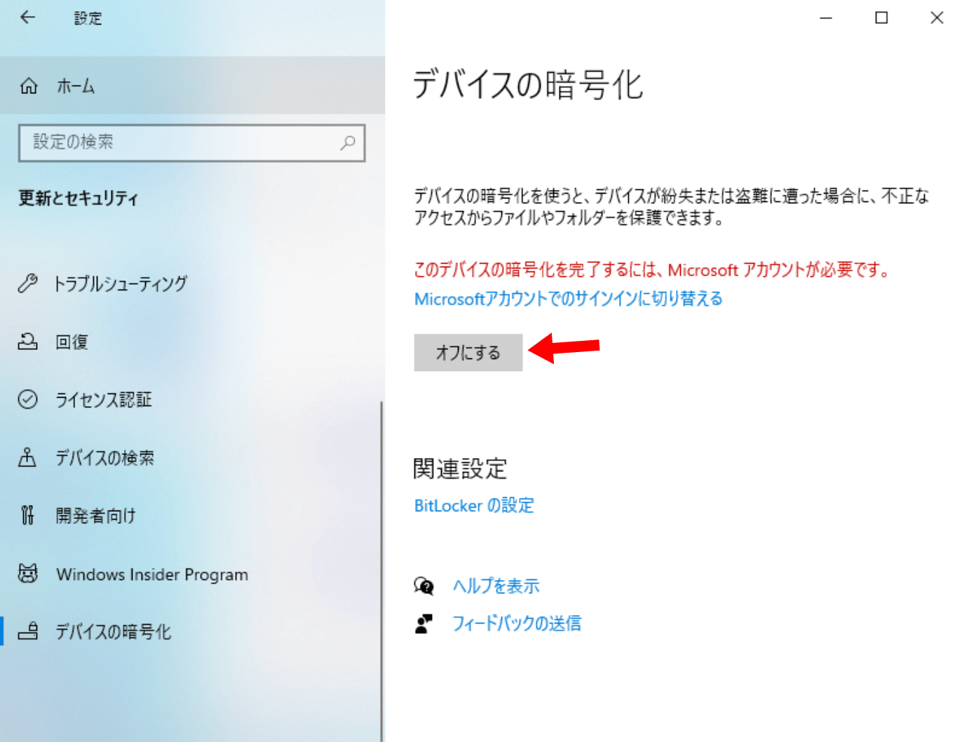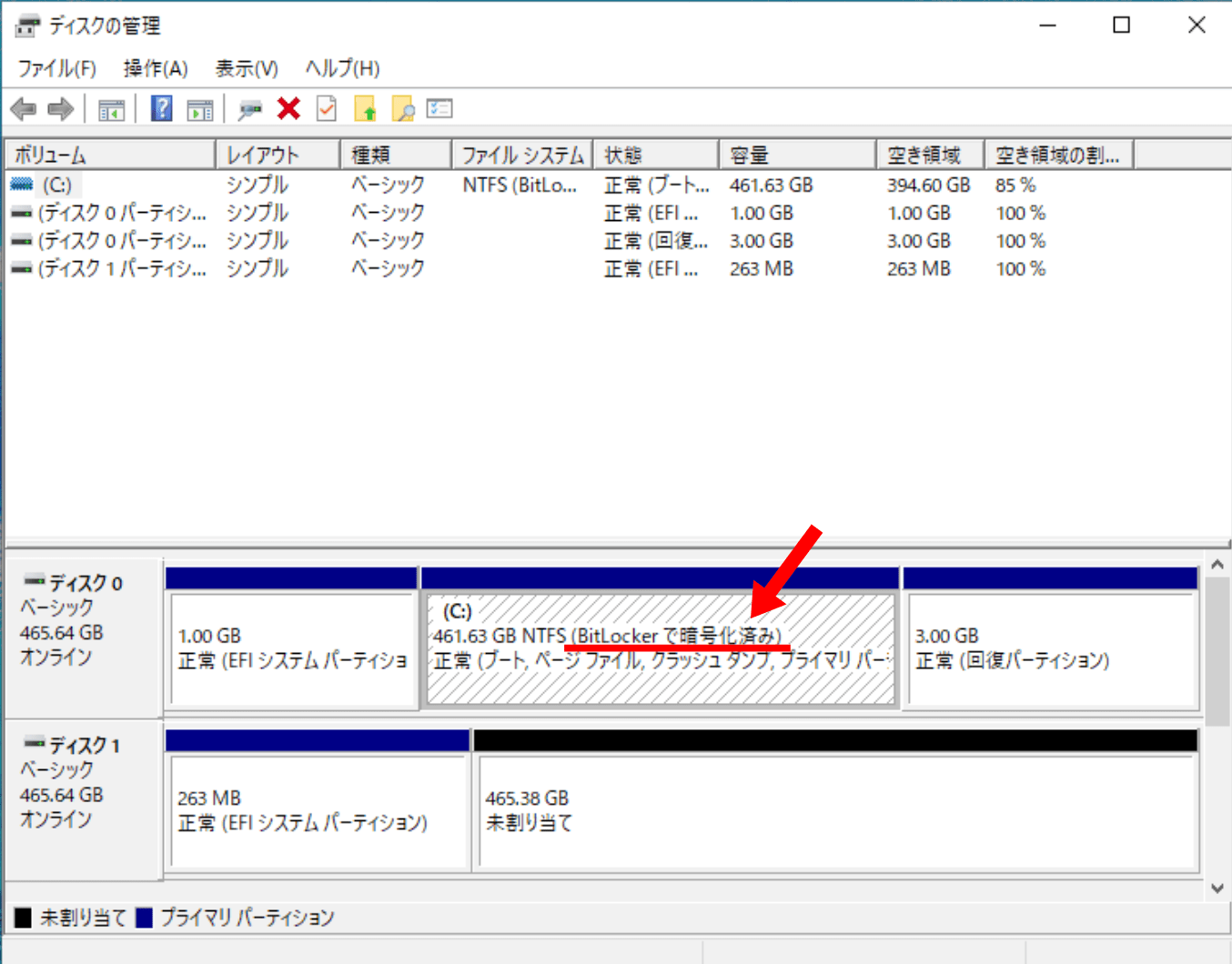このページで説明いただいたようなBitLockerの暗号化はされていなかったので、その作業は飛ばしています。