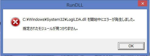 ちょっとドキッとするエラー画面ですが、LogiLDA.dllで検索するとよくあるエラーメッセージのようです。備忘録として対処方法をメモしておきます。OSはwindows8.1でした。