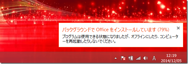 バックグランドでOfficeのインストールが完了したらセットアップ完了です。