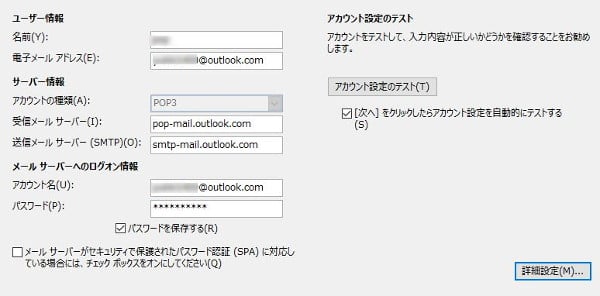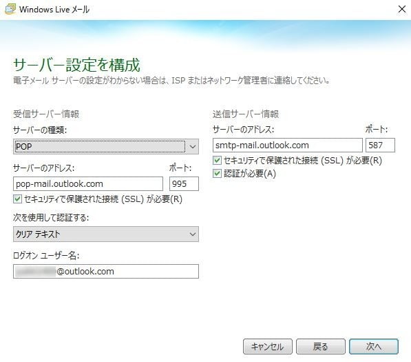 Windows Liveメールは2017年1月10日でマイクロソフトサポートが終了しています。この記事公開時は、この設定でメール送受信ができましたが、今後Outlookメール(hotomail)の仕様変更によりPOP受信ができなくなる可能性があることに注意です。