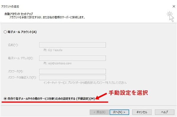各メールソフトで、手動設定でメールアカウント設定をします。Outlook2016とWindows Liveメール2012でテストして送受信ができるのを確認しました。
