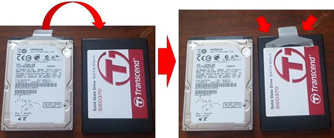 プラスチックの引っ張りをSSDに張り替えます。粘着性があるので何回か張り替えても大丈夫です。