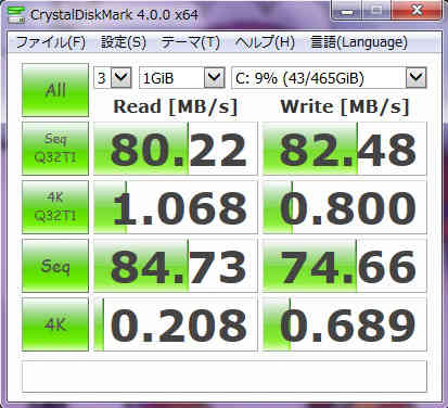 換装前のCrystalDiskMarkのベンチマークがコチラ