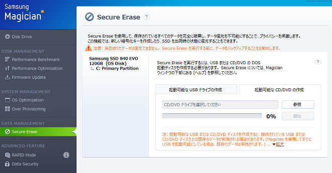 Samsung MagicianでSSDをSecure Eraseするのに苦労する