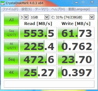 SATA3.0対応なのでReadはいい数字出ていますが、Writeに関してはHDD並みかそれ以下という、SSDとしては「最高」という商品ではないとしか言いようがありません。