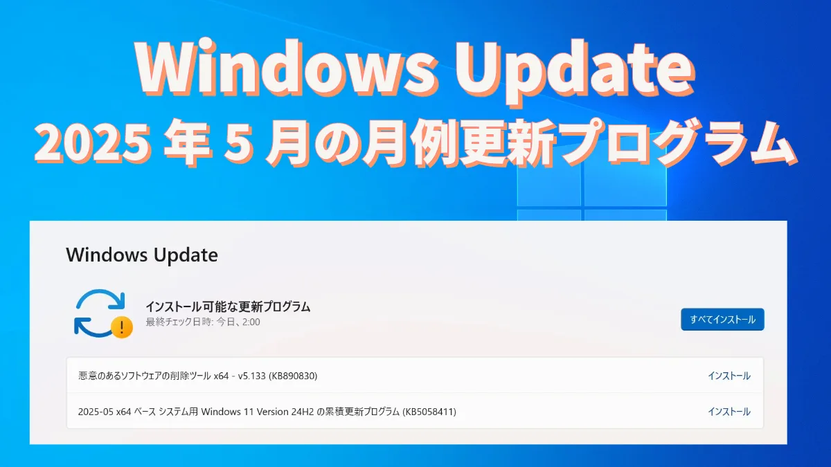2025年5月の月例Windwosアップデートが第2火曜日(日本時間第2水曜日)に配信されています。 クライアントOS別にwindows11、10のセキュリティ更新プログラム情報を書き出しています。月内に追加の更新プ …