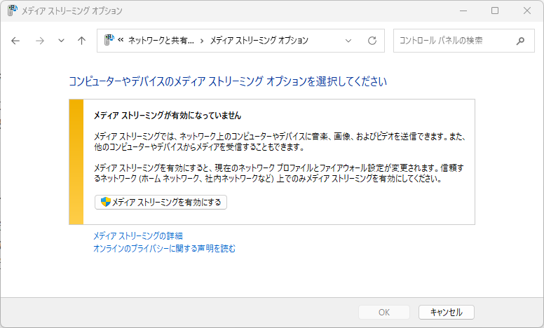 Windows 11は最初からDLNA対応なので、「メディアストリーミングを有効にする」だけでWindows10のときと同じように使えると覚えておくと回り道しないで済むかもしれません。