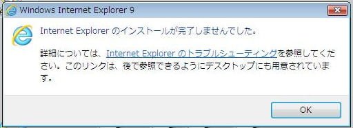 Internet Explorerのインストールが完了しませんでした。と出たのにIE9英語版になっている。
