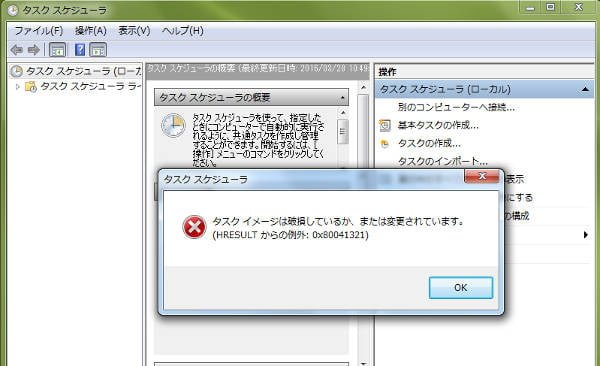 タスクイメージは破損しているか、または変更されています。(HRESULTからの例外:Ox80041321)