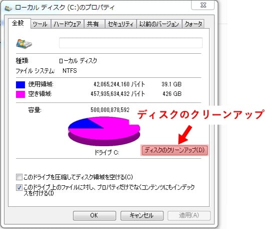 ディスクのクリーンアップを出す方法は、コンピューターを開き、Cドライブを右クリック→プロパティ→全般タブ→ディスクのクリーンアップをクリックします。