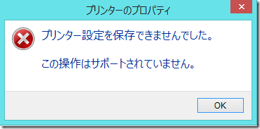 プリンター設定を保存できませんでした。この操作はサポートされていません。