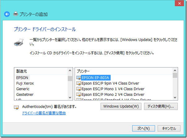今回は、windows8.1の新規パソコンにEPSONプリンタ EP-803AWの設定でチョイはまりしました。