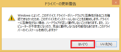 互換性が無いと警告が出ますが、無視して「はい」をクリック