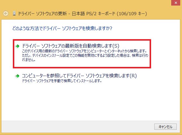 ドライバーソフトウェアの最新版を自動検索しますをクリック