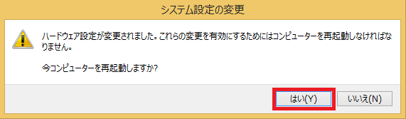 そうすると、HIDキーボードデバイスに自動更新されますので、「はい」で再起動します。