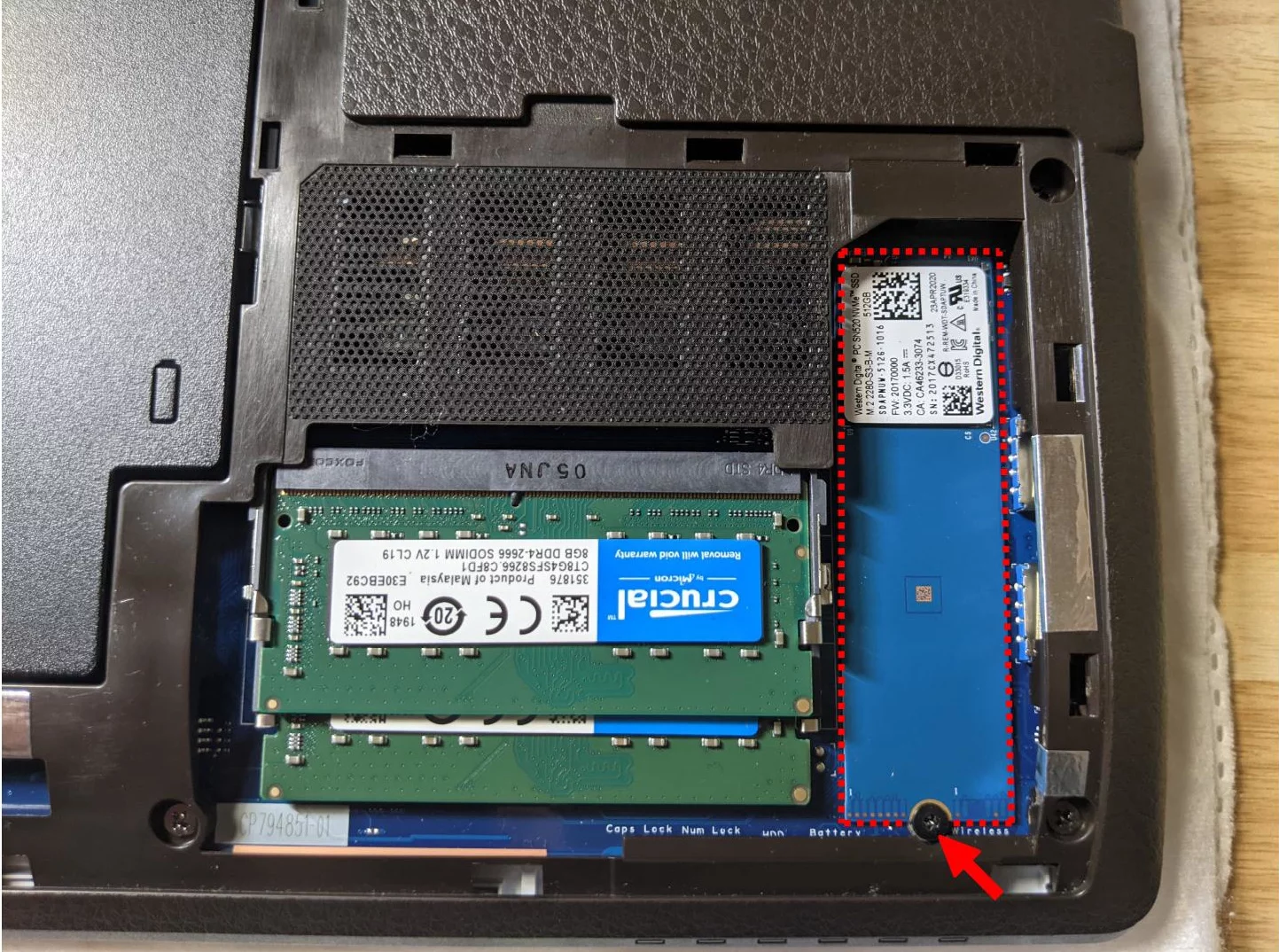 この機種は、メモリーとSSDにアクセスするための分解手順は簡単です。