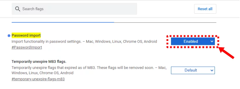 Password Importの項目を「Default」から「Enabled」に変更します。