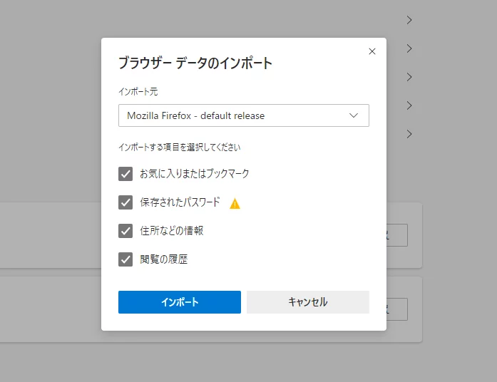 Edgeでインポートできない場合の対処方法で役に立ったようでよかったです。